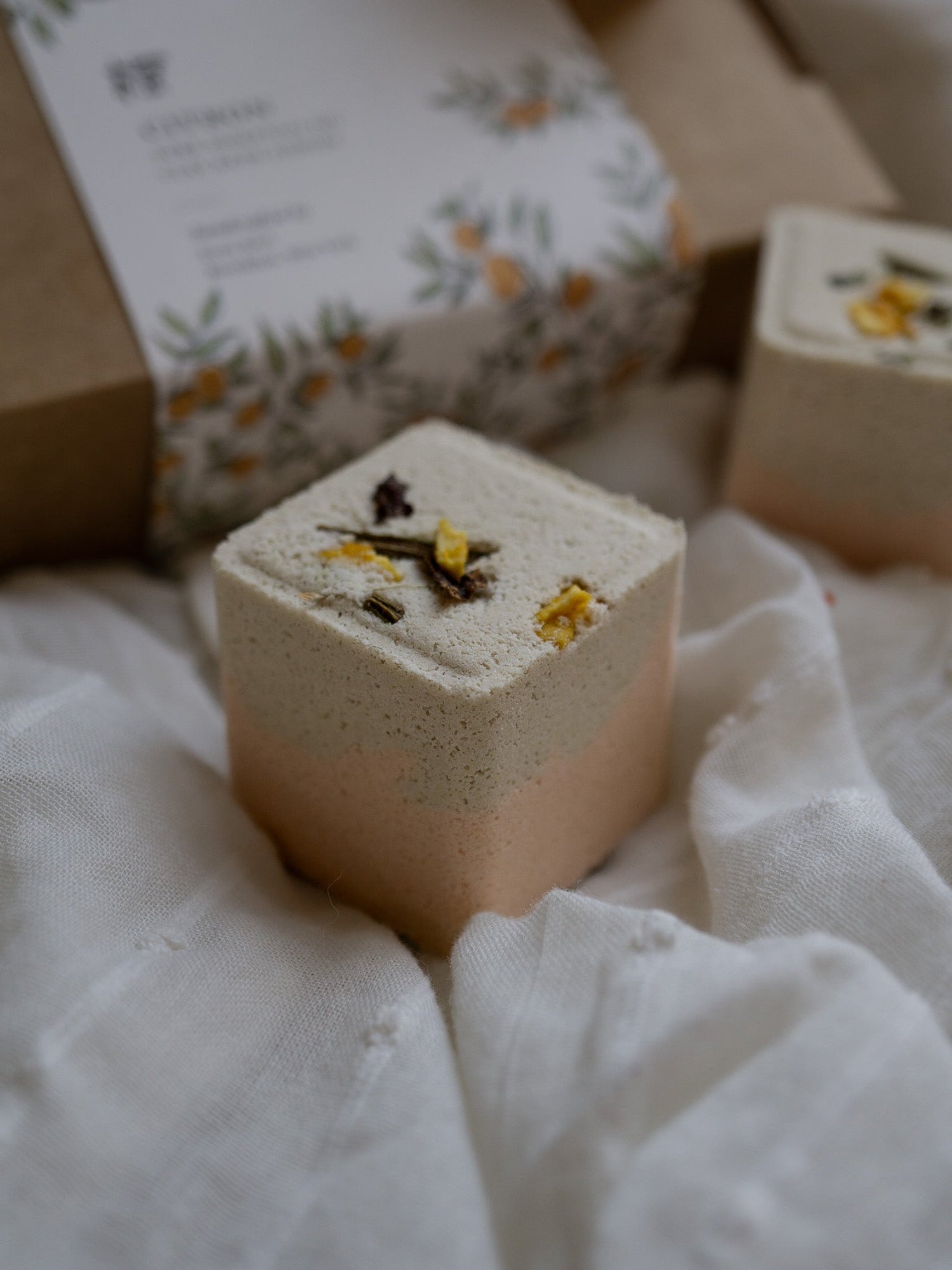 If bath products have ever felt synthetic or overstated, this set brings you back to clarity, to craft, and to the quiet power of simplicity. With only 6 simple, non-toxic ingredients, we are confident that this is the best bath fizzy cube you've experienced.