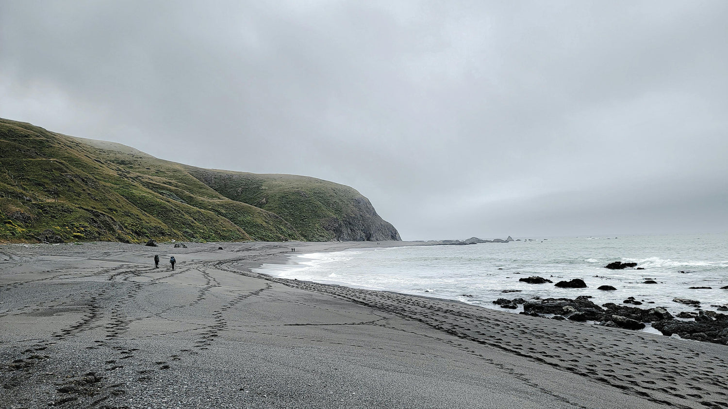 Surrounded by lush greenery and dramatic cliffs, the contrast of the deep black sand against the vibrant blue waters and lush green surroundings of Kehena make a striking landscape.