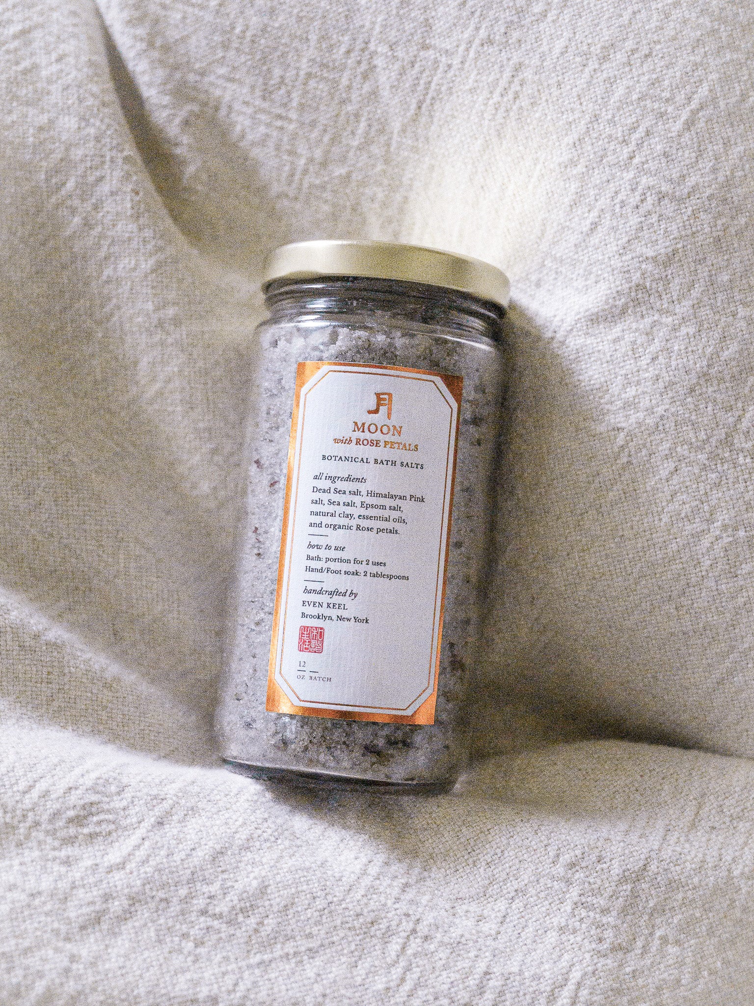 – A generous blend of Himalayan pink salt, Dead Sea salt, sea salt, magnesium sulfate (Epsom), and French rose kaolin clays: this blend is rich in minerals like magnesium and potassium that can support circulation and purification.